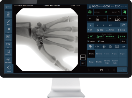 - EXTRON 만의 특허 기술인 스마트 디지털 포지셔닝 저장 기능으로, C-arm의 각도, 선량, 영상밝기 정보를 기억해 빠른 ABC 적용으로 불필요한 피폭 및 수술 시간을 단축 시켜 줍니다.